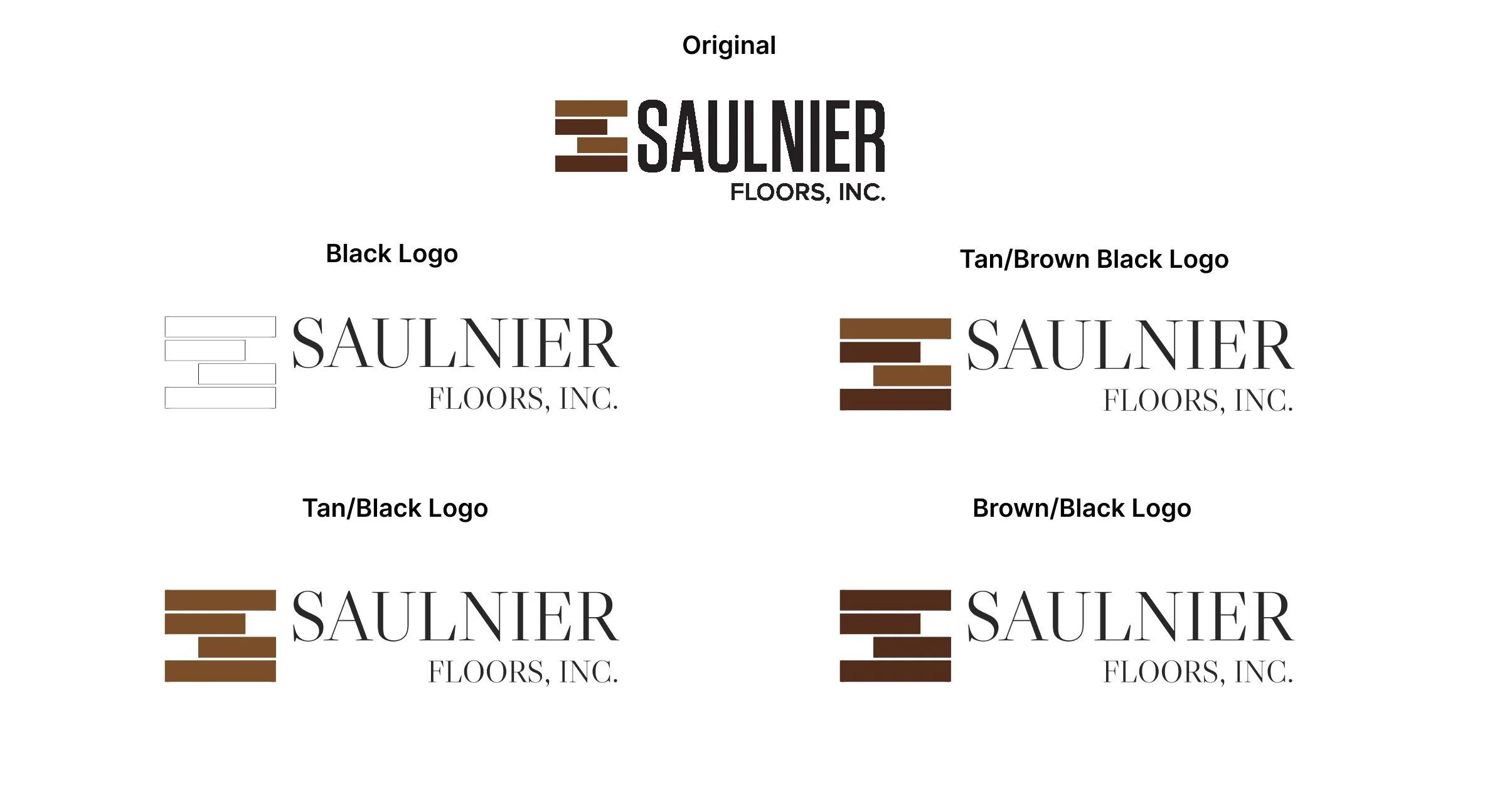 Saulnier Floors, Inc. faced a significant hurdle in attracting new clientele and elevating brand perception due to an outdated visual identity. Their existing logo, typeface, and color palette failed to convey the luxurious and high-quality experience inherent to their services, leading to a disconnect between their brand presence and their aspirational market positioning, while still needing to retain their core identity.